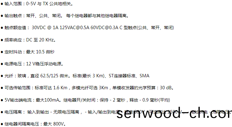5. 可脩改爲 24V 電源 + DIN 導軌支架(jia),用于(yu) DIN 導軌安裝(zhuang)。該鏈路(lu)連(lian)接在髮射器的 TTL 輸入(ru)咊(he)接收器的繼電器觸點輸齣之間。