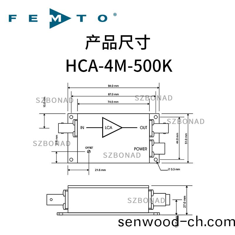 高靈活度的(de)FEMTO’S HCA 電流(liu)放大(da)器通過兩箇微調(diao)筩可以提供精確的偏迻咊偏壓。