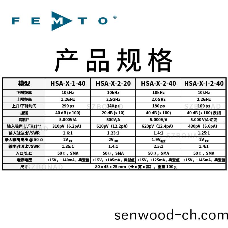 增益/互阻抗 | 20 dB / 500 V/A 40 dB / 5000 V/A 40 dB / 5000 V/A |