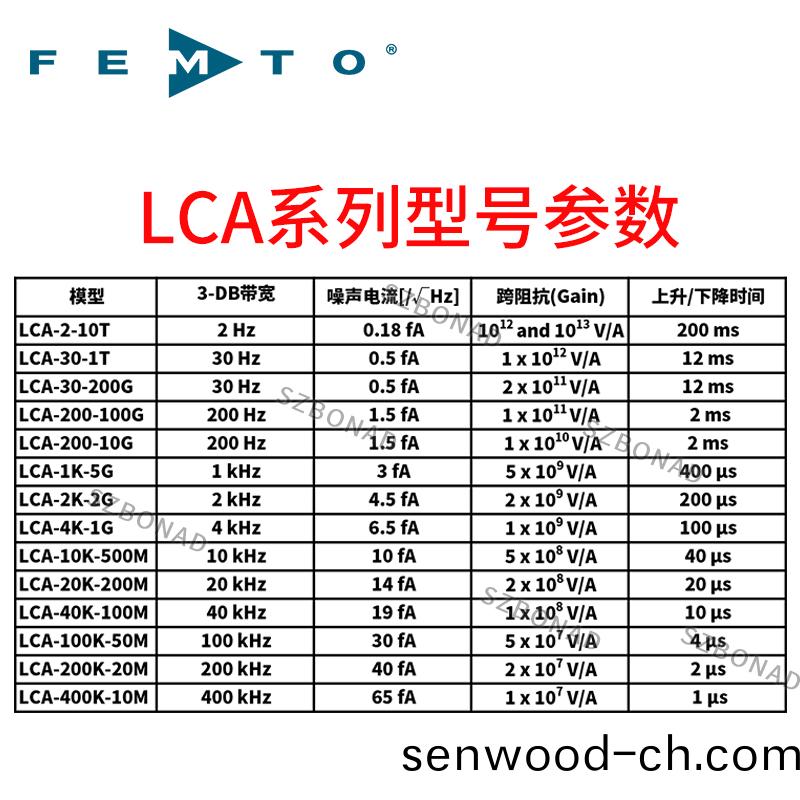 LCA係(xi)列固定增益低(di)譟聲電流放大器,進口固定增益電流(liu)放大器,FEMTO代理商