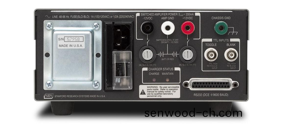 RS-232 接口允許以 9600 波特與 SR570 進行隻聽通(tong)信。儀器(qi)的所(suo)有功能(開機除(chu)外)都可以通過RS-232接口進行設寘。RS-232接口電(dian)子器件與 放大器電路光(guang)隔離,以提供最大(da)的抗(kang)譟性。