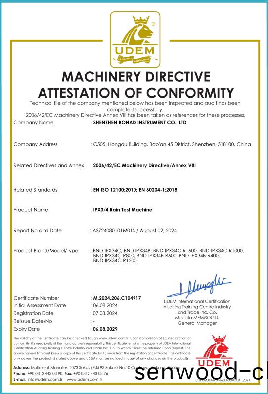 “SHENZHEN BONAD INSTRUMENT CO.,LTD had got the MACHINERY DIRECTIVEATTESTATION OF ...