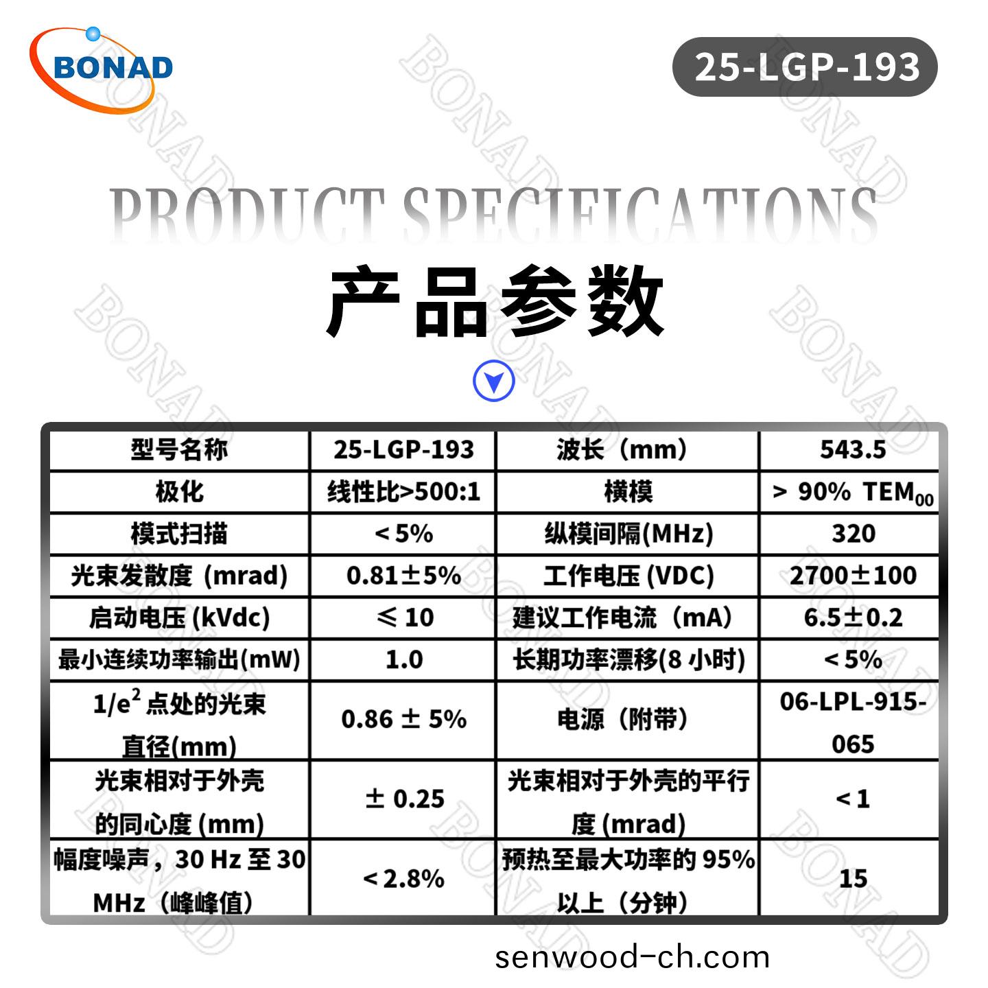 1.0 mW 543.5 nm(綠色)氦氖激光器25-LGP-193