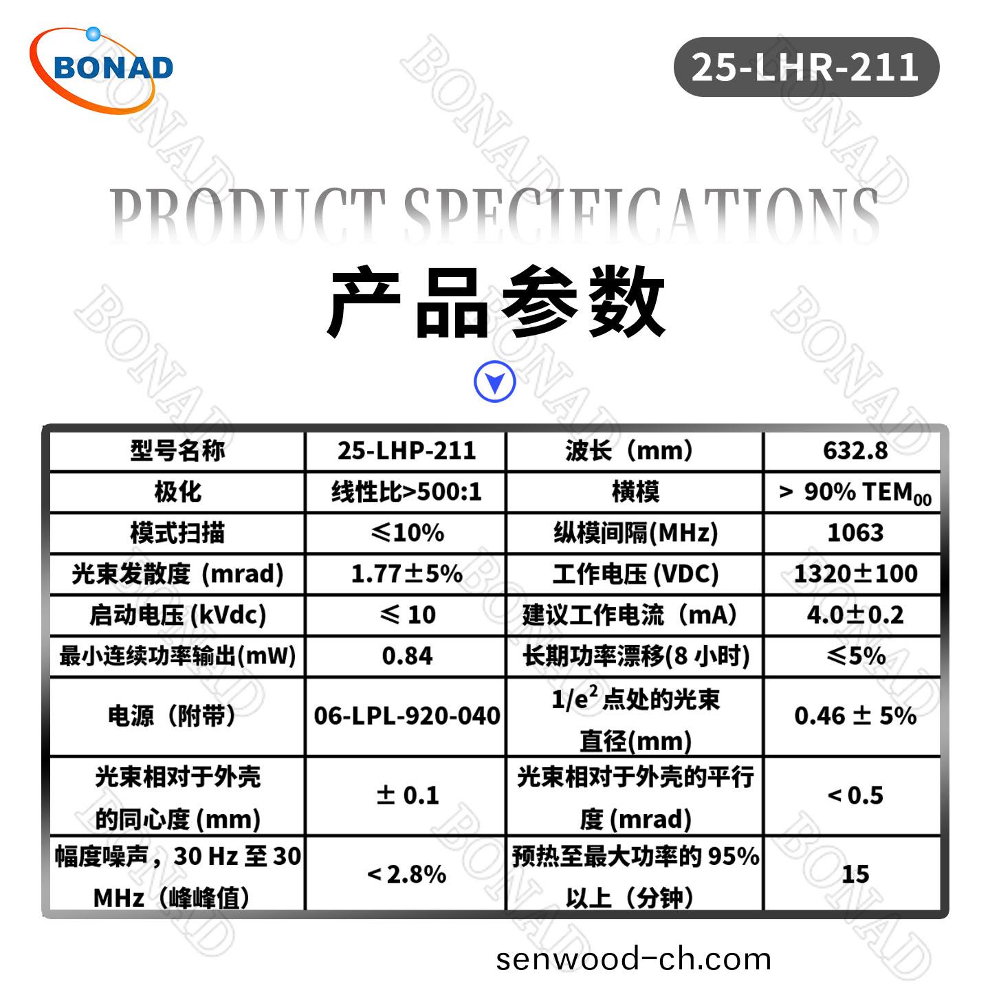 0.84mW小功率632.8 nm紅色氦氖激(ji)光係統(tong)25-LHP-211